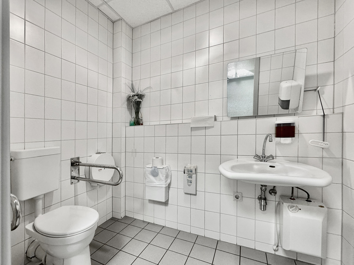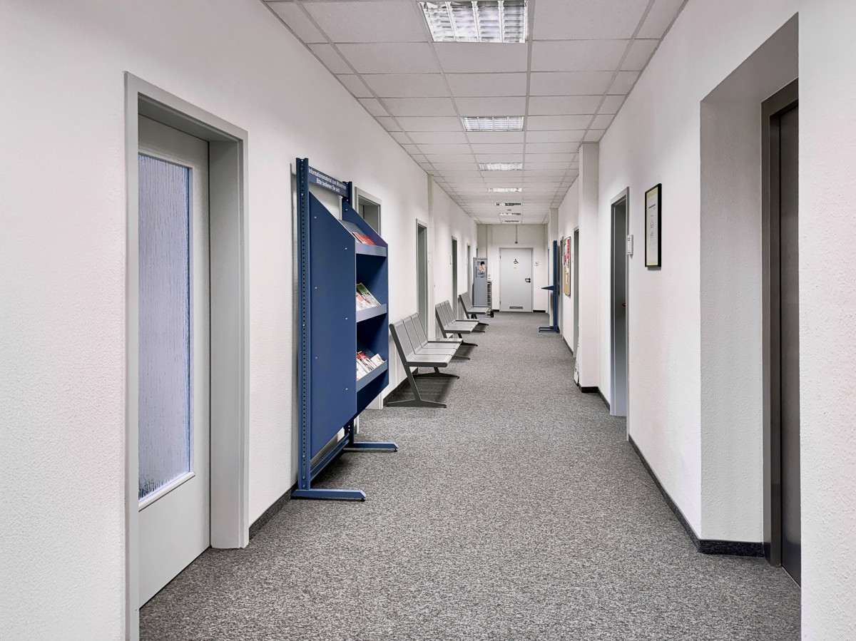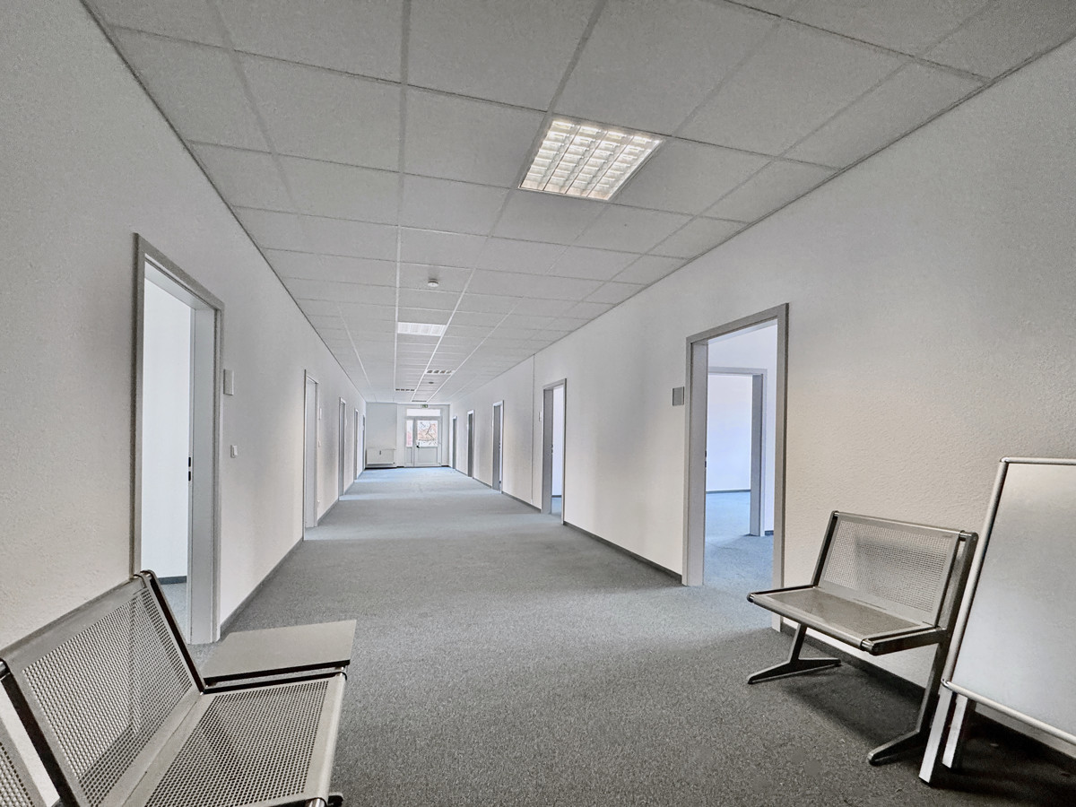 Die um 1980 errichteten Gewerbegebäude verfügen überwiegend über Büroflächen. Der Ausbau einer Gastronomiefläche wurde begonnen, jedoch nicht abgeschlossen. Ein wesentlicher Teil der Gewerbefläche (ca. 650 m²) ist seit 2005 an eine öffentliche Behörde vermietet. Der Mietvertrag wurde zuletzt bis zum 30.11.2027 verlängert und läuft danach unbefristet weiter. Im Jahr 2020 wurden diese Flächen modernisiert, neu gestrichen und die Fußböden erneuert.