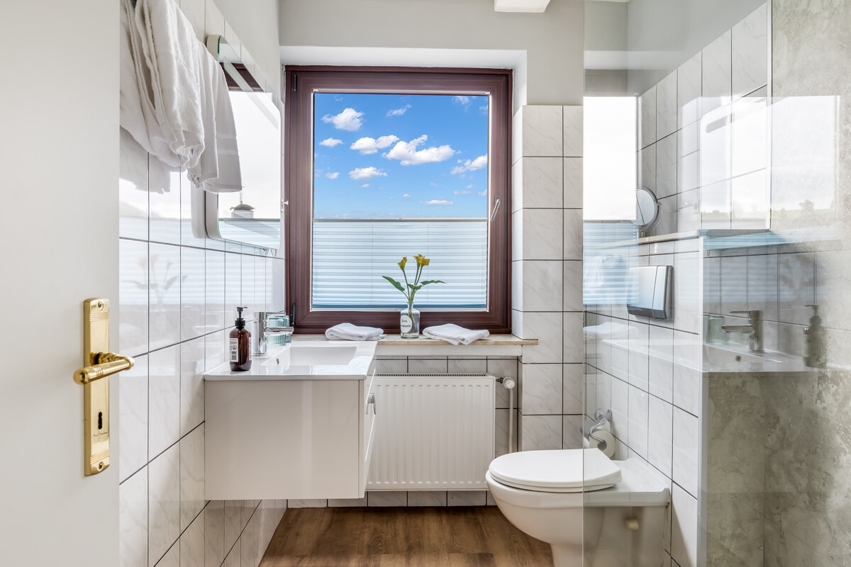 •4 stilvoll gestaltete Apartments, jeweils mit eigenem Schlafzimmer und Bad,