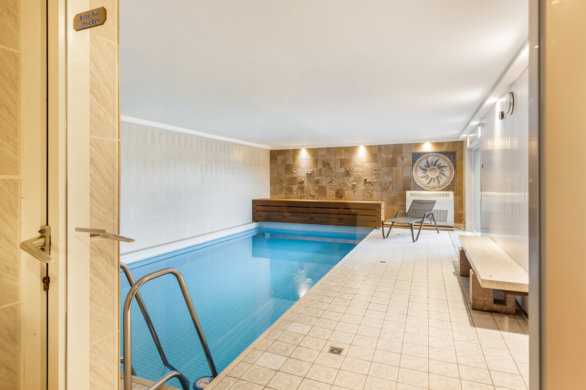 Für das Wohlbefinden der Gäste sorgt der großzügige Spa-Bereich mit Sauna und Schwimmbad, der das Angebot stilvoll abrundet.