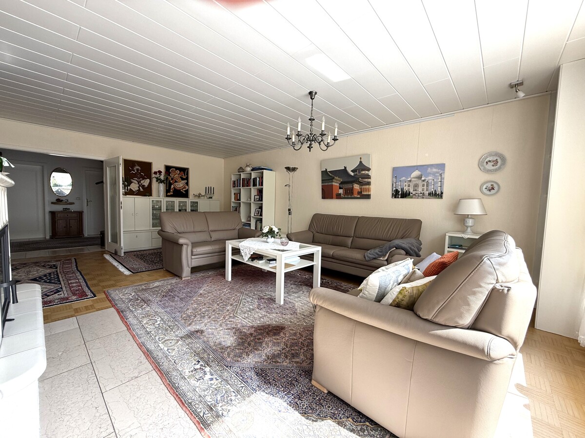 Das Highlight des Hauses ist der lichtdurchflutete Wohn-/Essbereich mit einem integrierten Kachelofen, der an kalten Tagen eine gemütliche Raumatmosphäre schafft. Angrenzend befindet sich ein Wintergarten von ca. 5 m² und eine großzügige Terrasse.