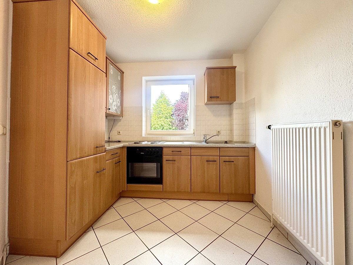 Das großzügige Wohnzimmer umfasst etwa 22 m², das Schlafzimmer ca. 15 m² und die Küche rund 7 m². Die in der Küche verbauten Einbauten sind im Kaufpreis enthalten und werden mitverkauft.