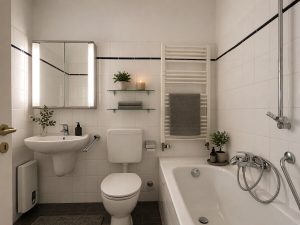 Das innenliegende Badezimmer ist mit einer Badewanne ausgestattet und wird auf ca. 5 m² funktional genutzt.