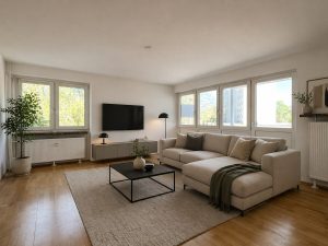 Das Wohnzimmer bietet Zugang zu dem ca. 5 m² großen Balkon.