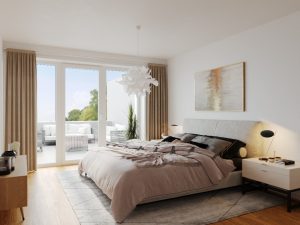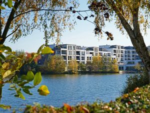 Bodentiefe Fensterfronten und großzügige Balkone oder Dachterrassen laden ein, den Blick über das Wasser schweifen zu lassen.