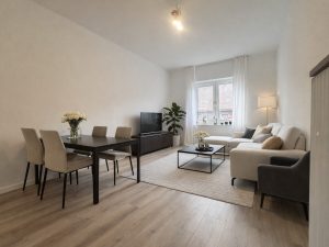 Die auf den Fotos dargestellten Möbel wurden aus Gründen des Schutzes der Privatsphäre der aktuellen Mieter mithilfe von KI digital verändert und dienen ausschließlich der unverbindlichen Visualisierung.