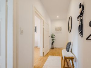 Beim Betreten der Wohnung werden Sie von einem einladenden, L-förmigen Flur empfangen, der alle Räume auf angenehme Weise miteinander verbindet.