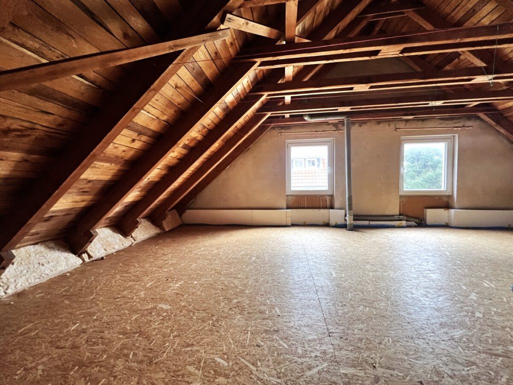 Ein besonderes Potenzial bietet das Dachgeschoss, das sich in einem vorbereiteten Zustand für den Ausbau befindet. Die wurden bereits vorgerüstet, sodass sich hier weiterer Wohnraum oder eine zusätzliche Wohneinheit realisieren lässt.
