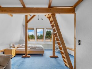 Eine Holzwendeltreppe bietet Zugang auf den ausgebauten Dachgeschossbereich mit ca. 25 m² Nutzfläche, der vielfältig nutzbar ist.