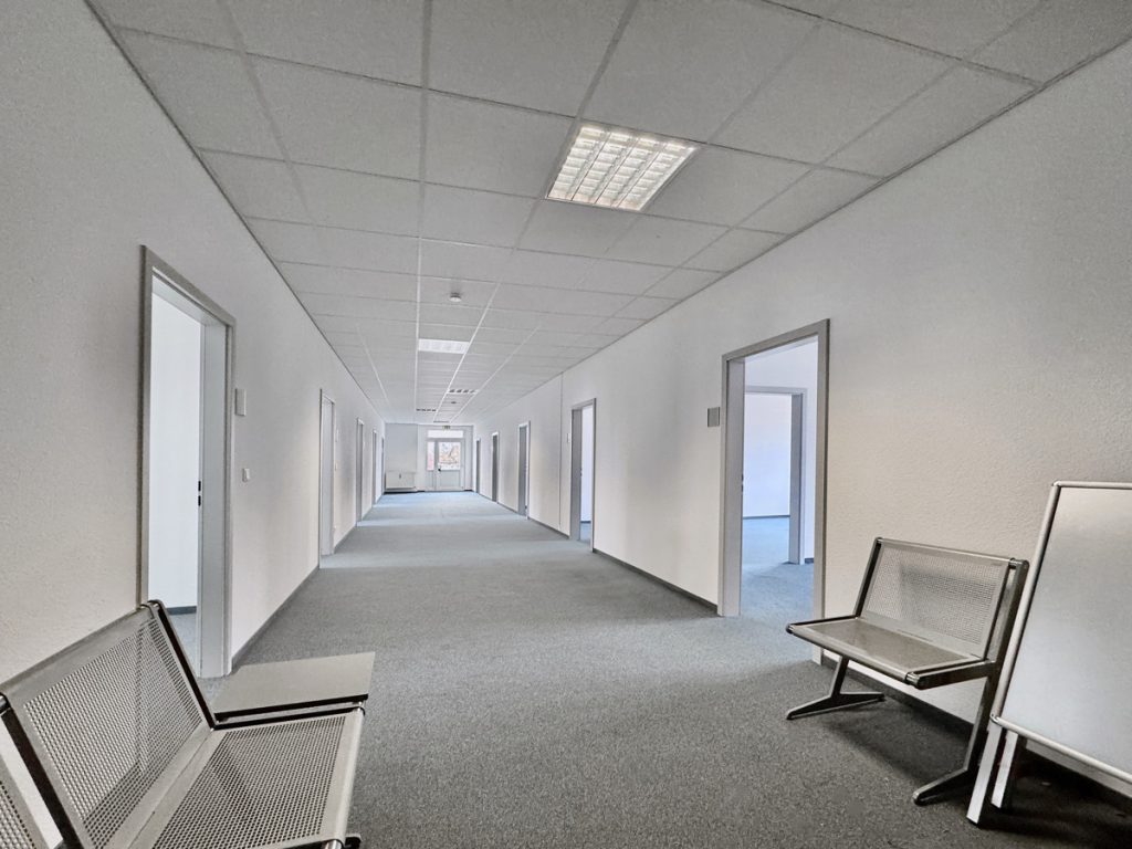 Dieses im Jahr 1980 errichtete Gewerbeobjekt erstreckt sich über zwei bis drei Geschosse und bietet eine vermietbare Fläche von insgesamt ca. 1.200 m². Der Schwerpunkt der Nutzung liegt auf Büroflächen, die flexible Gestaltungsmöglichkeiten für unterschiedliche Gewerbezwecke eröffnen.