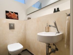 Gegenüber dem Eingangsbereich befindet sich das modern ausgestattete Gäste-WC.