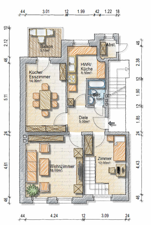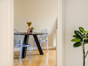 Das moderne Wohnkonzept kombiniert mit dem Charme vom "Altbau, wie die alten Dielen und der hervorragenden Raumaufteilung entstand durch die Verbindung zweier Wohnungen über eine Innentreppe.