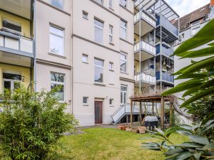 Die Wohnung befindet sich im 2. und 3. Obergeschoss eines gepflegten Mehrfamilienhauses im Jugendstil aus dem Jahr 1899 mit insgesamt acht Wohneinheiten.