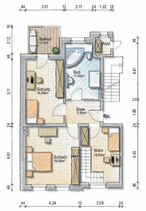 Zwei nach Osten ausgerichtete Balkone laden dazu ein, entspannte Stunden an der frischen Luft zu genießen.