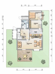 Aktuell sind die zwei Apartment Wohnungen (EG 36 m² und DG Maisonette mit 26 m² plus 10 m² Nutzfläche) im Anbau des Hauses vermietet. Dieser Teil des Hauses verfügt über einen separaten Eingang und über einen eigenen Hausflur, von wo aus die beiden Wohneinheiten im Erdgeschoss und im Dachgeschoss zu erreichen sind. Die Kaltmieteinnahme des Apartment im Erdgeschoss beträgt € 520/p.m. und der Maisonette Wohnung im Dachgeschoss derzeit € 580/p.m.