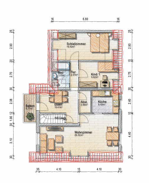 Eine ca. 86 m² große Erdgeschosswohnung mit Terrasse und Garten und eine ca. 82 m² große Dachgeschosswohnung inkl. Balkon befinden sich im Hauptteil dieses sehr ansprechenden Wohnhauses. Diese beiden Einheiten sind derzeit selbst genutzt und stehen zur Neuvermietung oder zur Eigennutzung zur Verfügung.