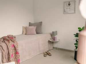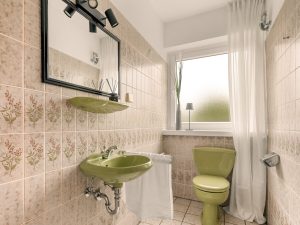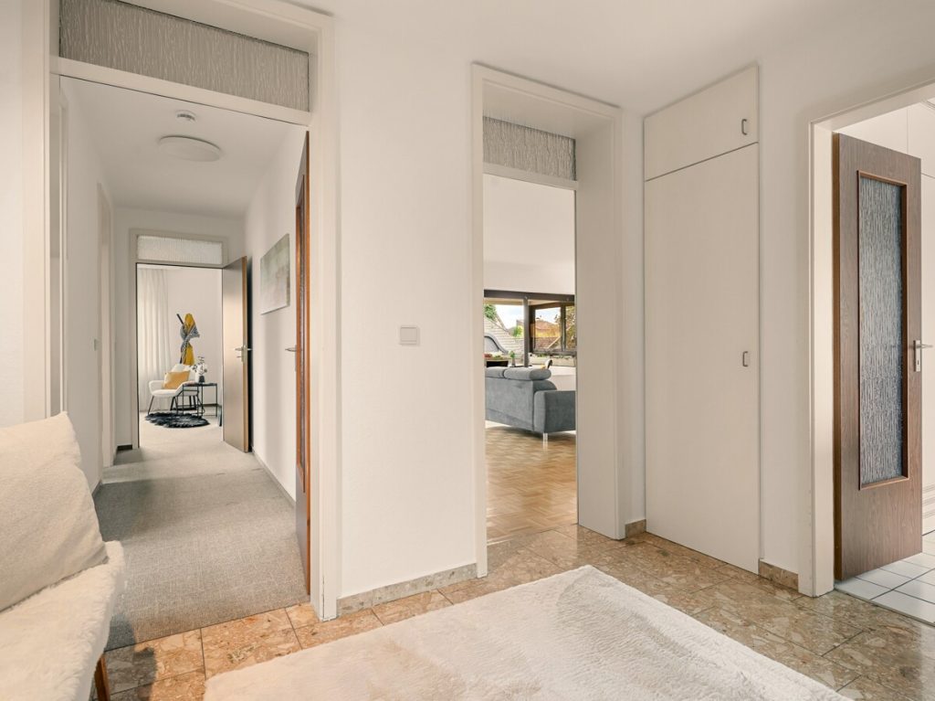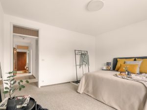 Über einen separaten Flur gelangen Sie zu den Schlafräumen. Zwischen den Zimmern befindet sich das großzügige Tageslichtbadezimmer mit Badewanne und Dusche.