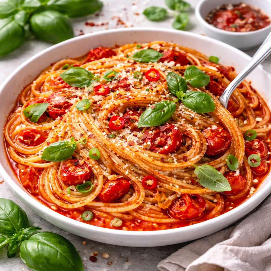 Spaghettini Arrabbiata ist ein Gericht, das sich anfühlt wie eine kleine Reise nach Italien nach einem langen Tag. Es ist schnell gemacht, aber trotzdem genau das Richtige, wenn man etwas braucht, das wärmt, sättigt und gleichzeitig gute Laune schenkt. Es ist dieses Zusammenspiel was eine Arrabbiata zu einem echten Wohlfühl-Essen macht.